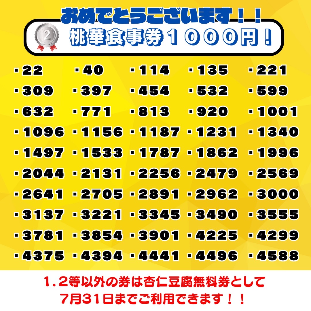 6月配布 抽選券の当選発表
