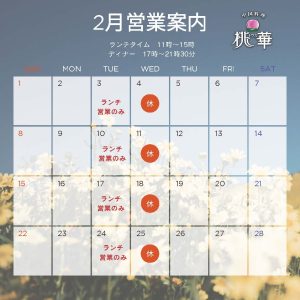 1月・2月の営業案内です。画像で確認できます。