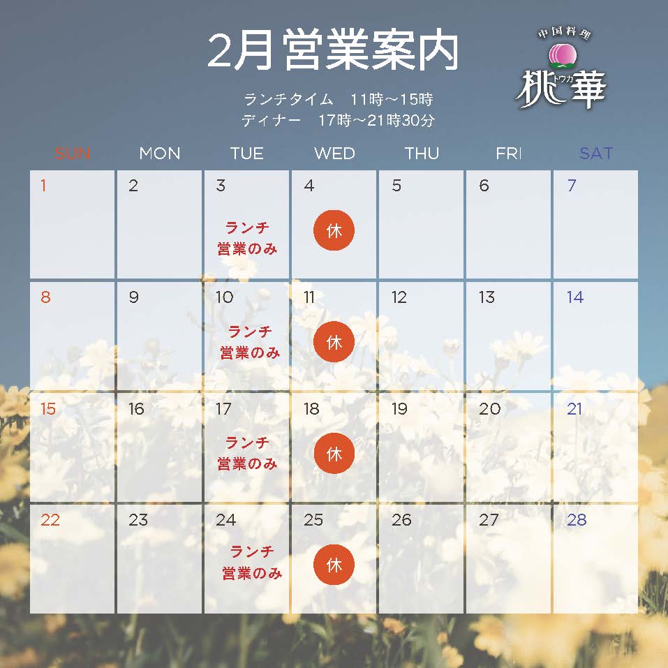 1月・2月の営業案内